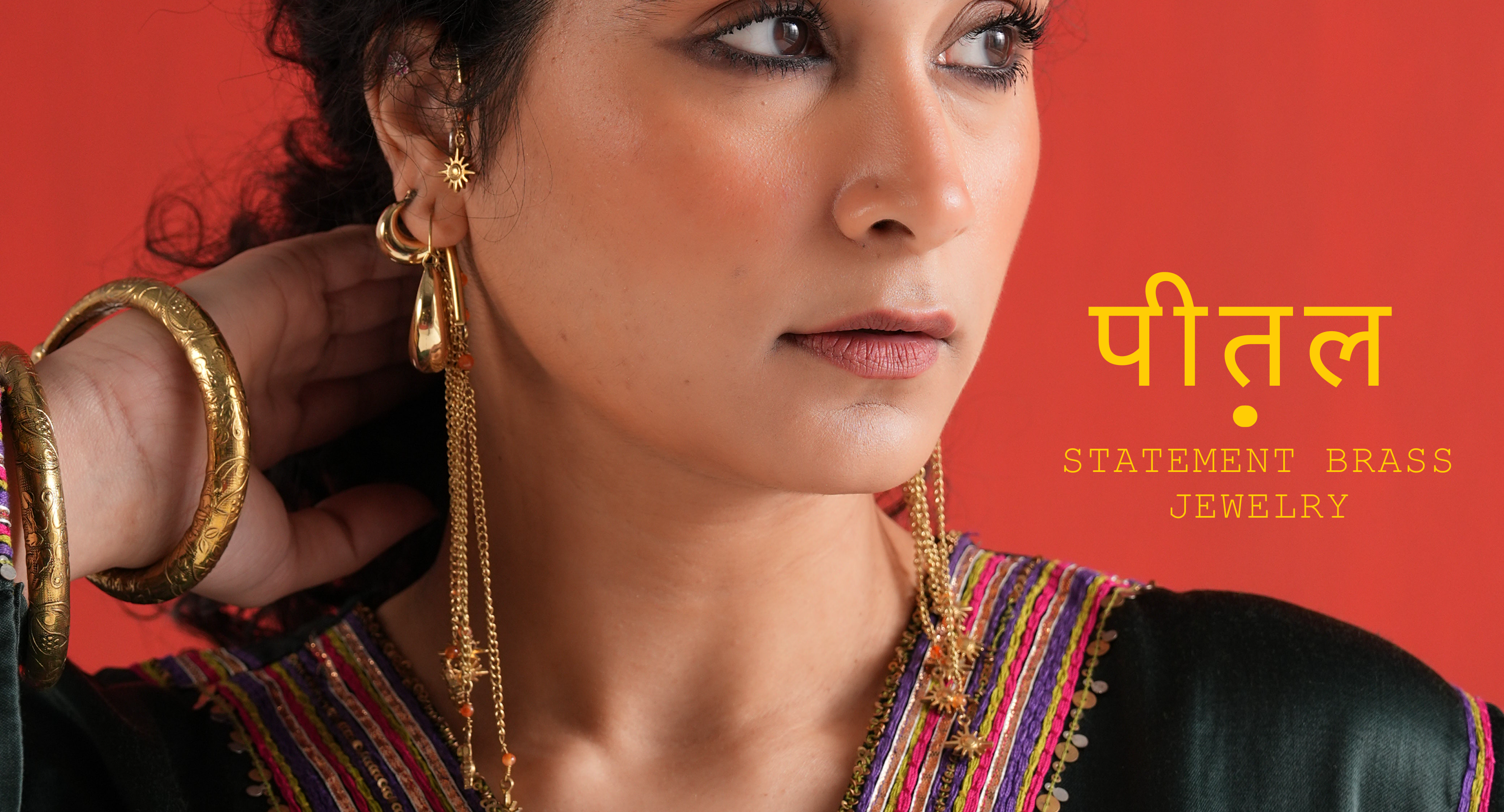 Brass Hand-moulded Chaandbali - Extra Large